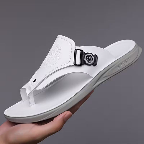 White Oluna Home Men’s Lion Carved Casual Slippers – Summer Street Style