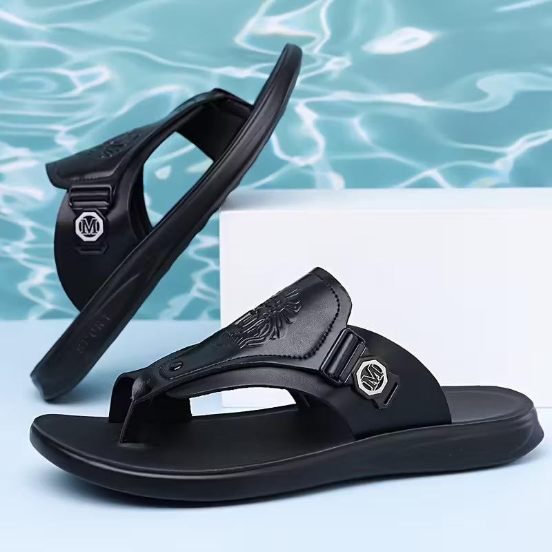 Black Oluna Home Men’s Lion Carved Casual Slippers – Summer Street Style