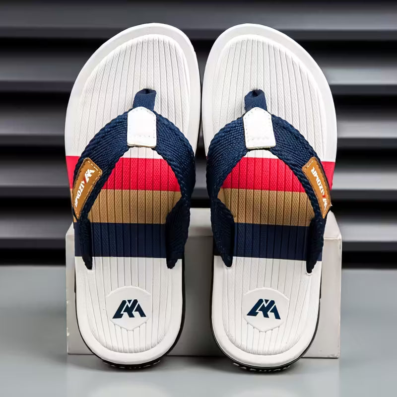 The heavy-duty rubber sole provides non-slip grip, while the slip-on moccasin-inspired design adds a stylish edge. Available in Navy, White, Black, Red, and Beige, these versatile slippers are perfect for casual outings, travel, and even semi-formal summer events.